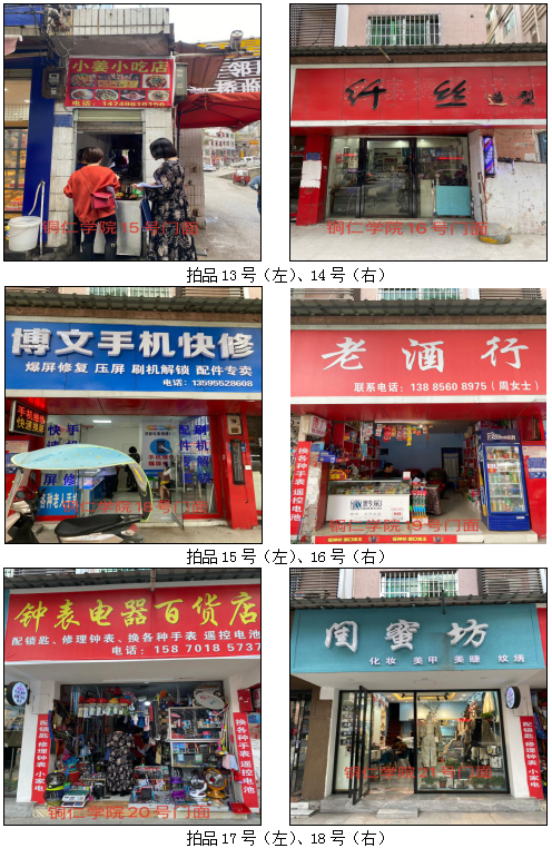 1.拍品1至21號標的位于銅仁市清水大道銅仁學院附中旁,面積7——28㎡,租賃期3年(2021.05.01至2024.04.30止),交通便利,人流量大。