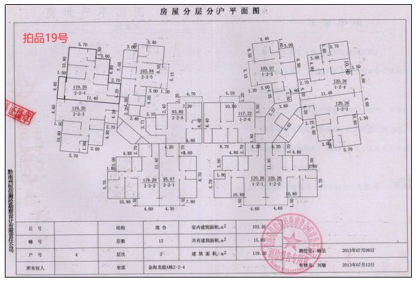 拍品18號所在層數(shù)2層,房屋建筑面積804.93㎡,分?jǐn)偼恋厥褂脵?quán)面積176.68㎡,分?jǐn)偨ㄖ娣e73.83㎡。建筑物外墻貼墻磚,室內(nèi)地面貼地磚,安裝鋁合金窗,木包門。不動產(chǎn)權(quán)證號:黔(2020)獨(dú)山縣不動產(chǎn)權(quán)第0000887號。