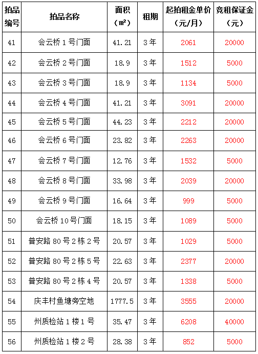 受委托,我公司定于2021年1月28日(星期四)上午9:30和下午14:00,在黔南州公共資源交易中心多功能廳公開拍賣以下標的租賃權(quán):