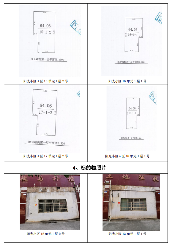 拍品編號16-21號標的位于威寧縣海邊街道廣園路陽光小區(qū),房屋結構均為:混合結構,權利性質:國有土地/出讓/其他,用途:商服用地/商業(yè)服務,使用期限:2012年12月20號至2052年12月19日。