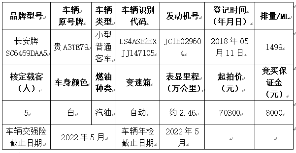 一、拍賣(mài)標(biāo)的:長(zhǎng)安牌SC6469DAA5小型普通客車(chē)一輛。