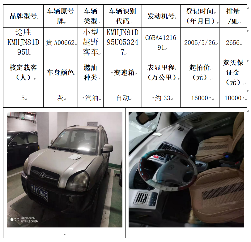 拍品編號5:途勝KMHJN81D95U小型越野客車一輛