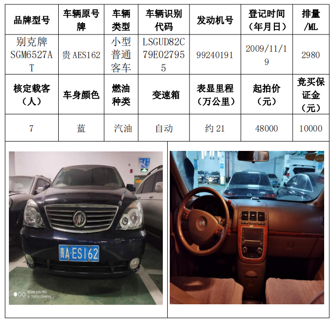 拍品編號(hào) 3:別克牌 SGM6527AT 小型普通客車(chē)一輛