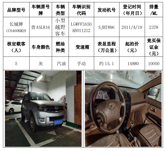 拍品編號(hào)5:長(zhǎng)城牌CC6460KM29小型越野客車(chē)一輛