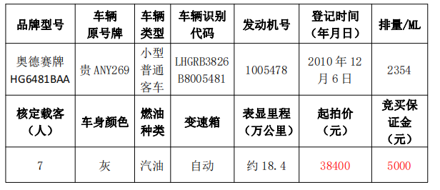 拍賣(mài)編號(hào)7:奧德賽HG6481BAA小型普通客車(chē)一輛