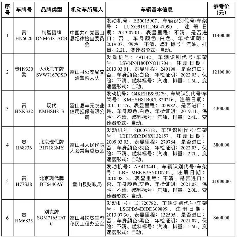 受雷山縣財政局委托,我公司于 2021 年09月15日(星期三)下午 14:30 時在雷山縣紅楓水岸4樓財政局會議室公開拍賣下列標的物: