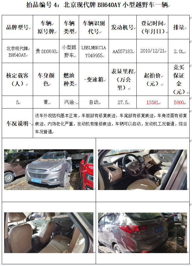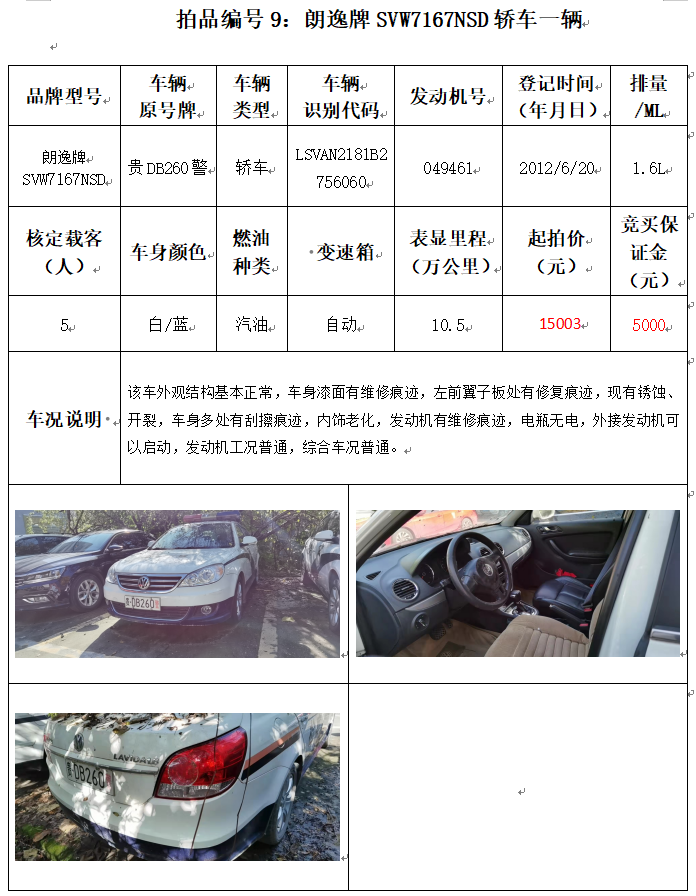 受委托,本公司定于2021年12月10日(星期五)下午14:00時,在銅仁市碧江區(qū)川硐教育園區(qū)誠信路銅仁市公共資源交易中心開標六室(拍賣大廳)公開拍賣以下車輛: