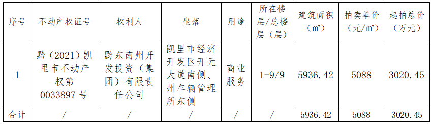 受黔東南州開發(fā)投資(集團(tuán))有限責(zé)任公司委托,我公司定于2022年01月06日(星期四)下午14:30時(shí)在黔東南州公共資源交易中心多功能廳公開拍賣以下標(biāo)的: