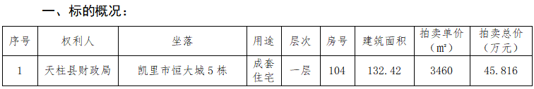 受天柱縣財政局委托,本公司于2021年12月28日(星期二)下午14∶30時,在凱里市環(huán)城東路麗晶天大酒店斜對面本公司三樓會議室,對以下標(biāo)的物按現(xiàn)狀現(xiàn)樣進(jìn)行公開拍賣。