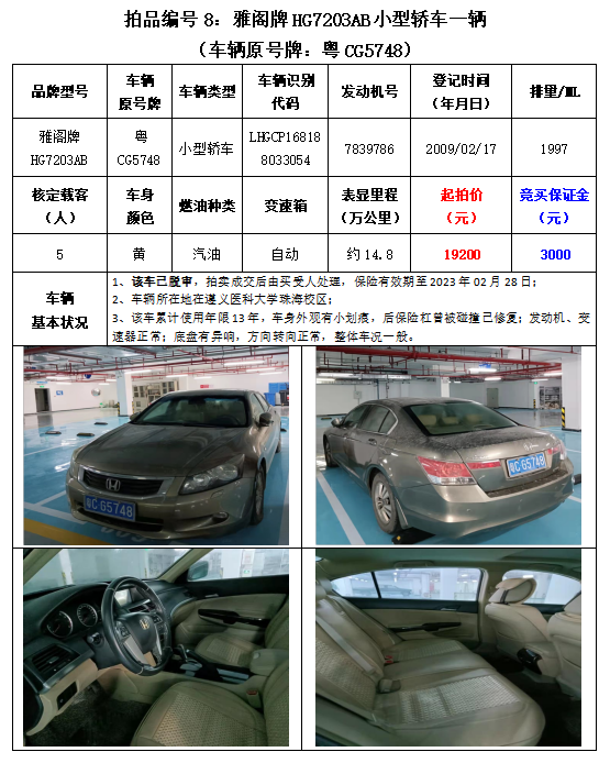 七、報(bào)名需交納競(jìng)買保證金(車輛3000元、房產(chǎn)20萬元)資料服務(wù)費(fèi)300元/套(資料服務(wù)費(fèi)不退)。意向競(jìng)買人應(yīng)在規(guī)定報(bào)名時(shí)間內(nèi)交納競(jìng)買保證金、資料服務(wù)費(fèi)到我公司指定銀行賬戶,取得意向競(jìng)買資格。