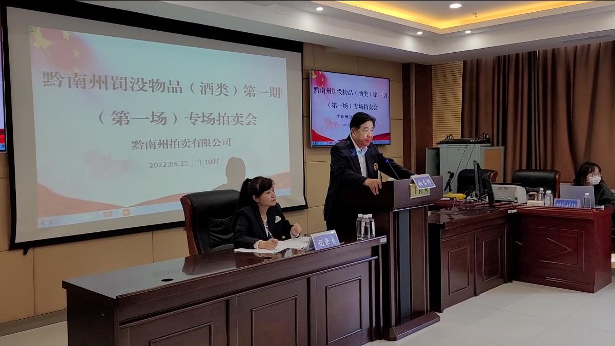 黔南州罰沒物資(酒類)資產(chǎn)處置工作由黔南州拍賣有限公司分四期完成;第一期茅臺酒專場拍賣會采取現(xiàn)場和網(wǎng)絡相結合的拍賣方式進行,現(xiàn)場拍賣會于2022年5月25日、5月26日在黔南州公共資源交易中心多能廳舉行。